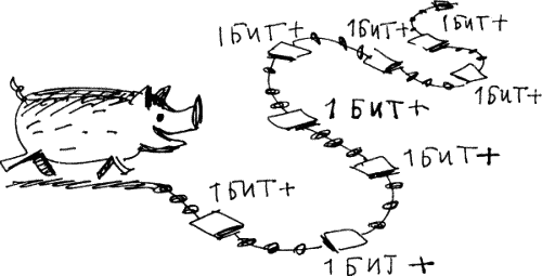 Нам надо так же разделить всю информацию, которой мы владеем, на маленькие кусочки. 1 бит = 1 капля информации, возбуждающая действие.