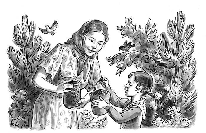 Полна стеклянная банка у матери, полно ведерочко у Светы – даже с верхом. Теперь можно и самим полакомиться. На выходе из леса Света спрашивает: