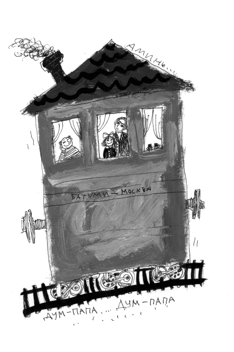 Мы с мамой, папой и бабушкой стоим возле длинного железного домика. У него огромные колеса, которые сильно пахнут – как трактор в деревне у соседа Тамаза.