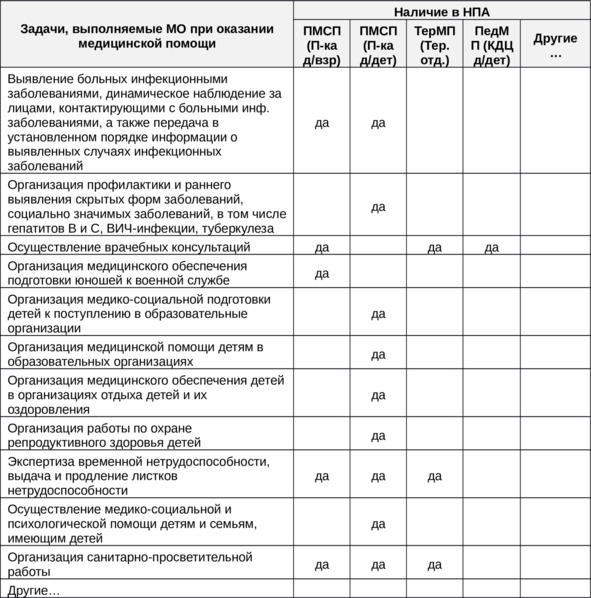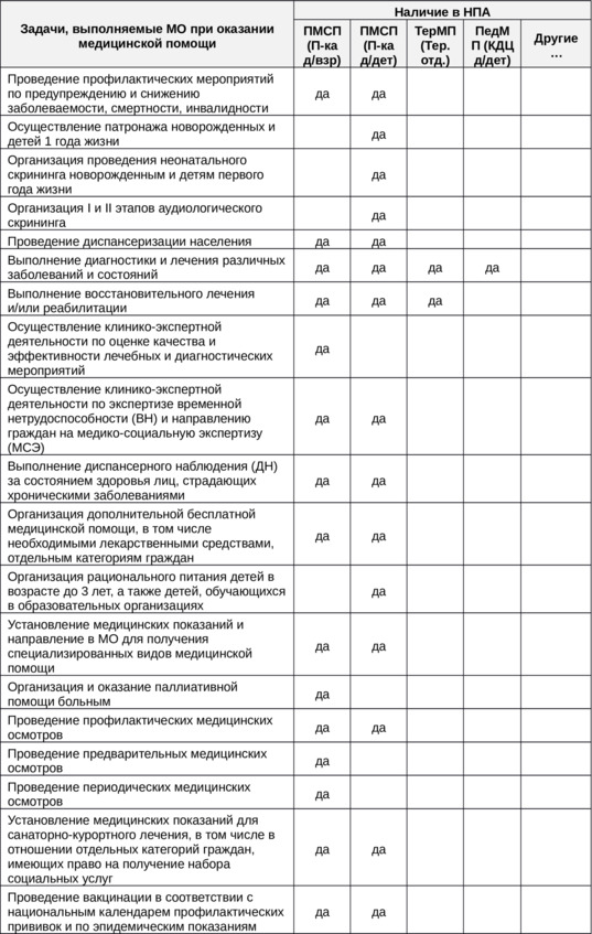 Таблица 5 (часть 1). Задачи, выполняемые МО при оказании медицинской помощи