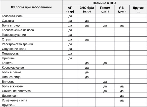 Жалобы, фигурирующие в вышеперечисленных клинических рекомендациях, представлены в таблице 8.