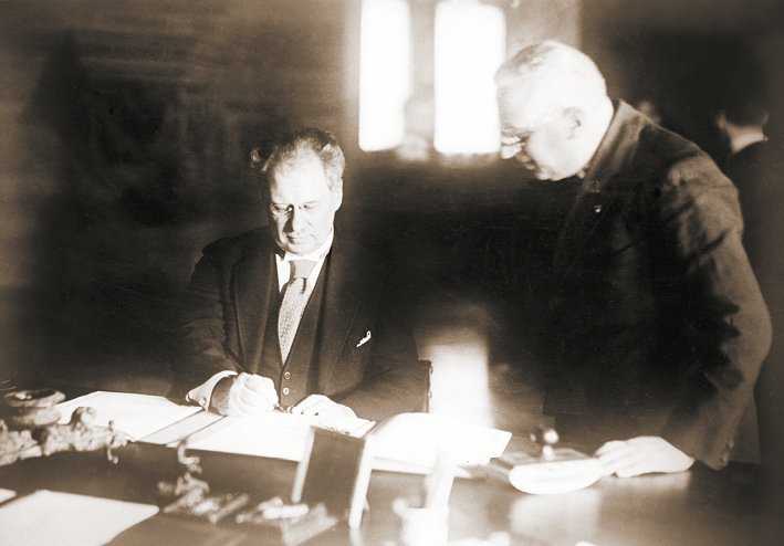 Полпред СССР в Италии В.П. Потемкин подписывает пакт, заключаемый СССР и Италией. 1933