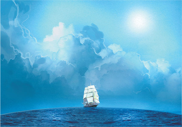 Появление над горизонтом. Земля имеет форму шара. Поэтому, когда корабль приближается к нам, сначала мы видим над горизонтом его мачты и паруса, а уже потом появляется его корпус.