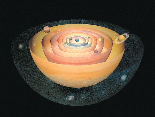 В отсутствие птолемеевых сфер отпала необходимость и в предположении о наличии у Вселенной некой внешней границы. Более того, поскольку у звезд не обнаруживалось никакого движения, кроме общего суточного движения небосвода, вызванного вращением Земли, то было естественно предположить, что это такие же тела, как наше Солнце, только расположенные гораздо дальше. Таким образом, ученые не только отказались от представления о центральном положении Земли во Вселенной, но также и от идеи об уникальности нашего Солнца да и всей Солнечной системы. Новый взгляд на мир ознаменовал фундаментальные изменения в человеческом мышлении, начало нового современного научного понимания нашей Вселенной.