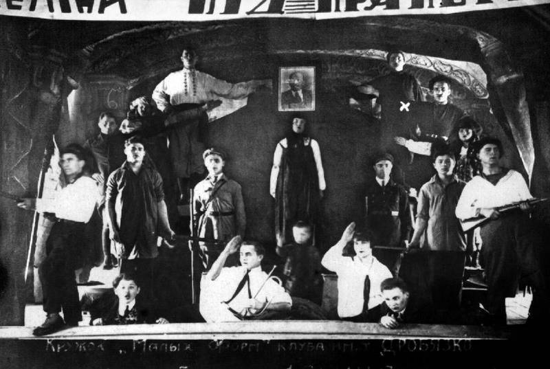 Особенно запомнилась наша творческая деятельность в стилизованном театре под названием – кружок «Малых форм», в клубе имени Дробязко, увековечившем имя, ещё совсем недавно погибшего, молодого героя Гражданской войны. Этот молодежный самодеятельный театр имел большой успех у тогдашней публики и, с помощью него, мы несли идеи борьбы и индустриализации в народ.