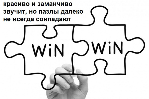 Первая заключается в том, что о взаимовыгодных переговорах говорят практически все известные авторы трудов о переговорах. Причем гораздо ранее появления на свет Гарвардской модели. Я об этом уже писал. Более того, все нормальные бизнесмены и переговорщики именно с позиций взаимной выгоды и ведут свои переговоры. И никакой сенсационности и новизны в этом нет. Но авторам статей нужна сенсация, нужно показать свою значимость, привлекательность. Вот и подменили обыденное, но понятное словосочетание «взаимовыгодные переговоры» многим непонятным, но звонким «win-win».