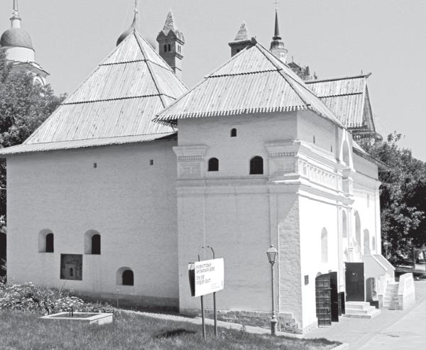 Прямоугольный объем справа – вторая четверть XVII в., левая часть – постройка грозненского времени, под ней более древний подвал, смотрящий наружу двумя нижними окнами