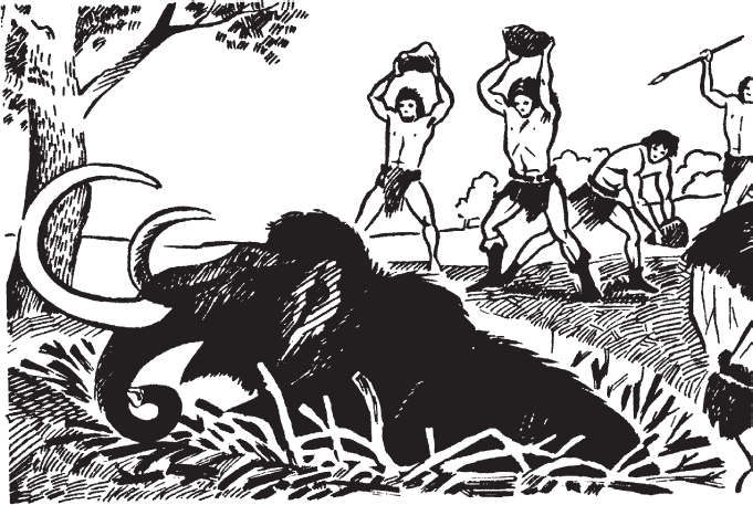Я помню картинку из книги о древних людях: толпа нападает на мамонта, а тот, осев на задние ноги и подняв хобот, отчаянно сопротивляется. Но что может сделать один мамонт против целого племени?