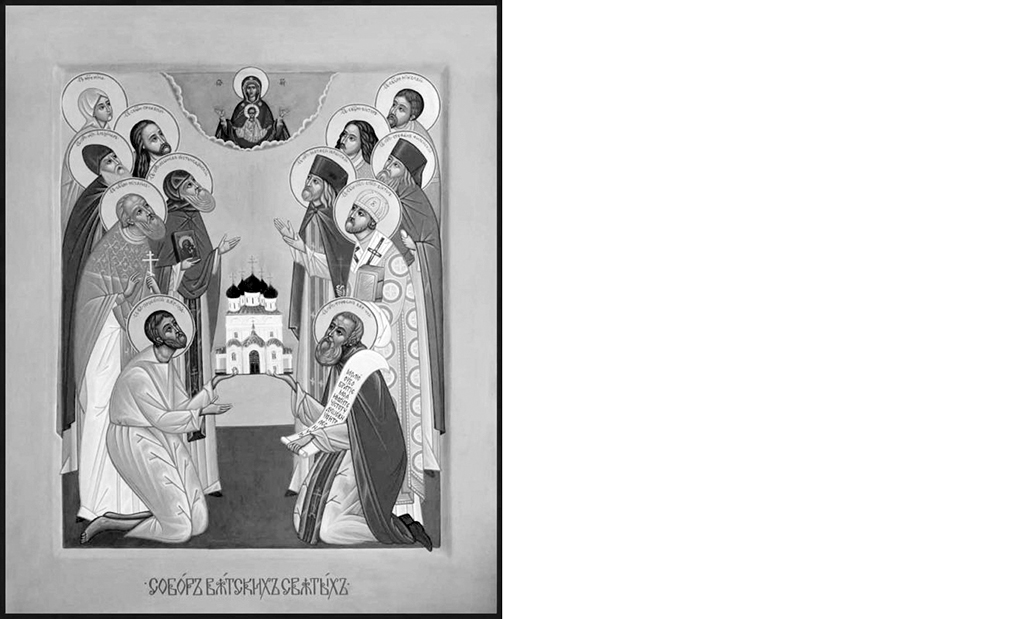 Такой «свой» праздник имеет отнюдь не каждая епархия. Вятской выпала такая честь, потому что она является одной из старейших на северо-востоке России и праздновала в тот год 350-летие. К этому юбилею в то время благочинный Слободского округа, настоятель Свято-Екатерининского кафедрального собора города Слободского (ныне настоятель Вознесенской церкви поселка Вахруши Слободского района) протоиерей Александр Матвеев написал специальную икону, где изобразил в красках всех Вятских святых.