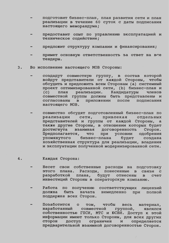 Также в протокол были включены предложения российской стороны по изменениям и дополнениям в Устав и Учредительный договор. Американцы пообещали дать уточнения и разъяснения до 12 марта.