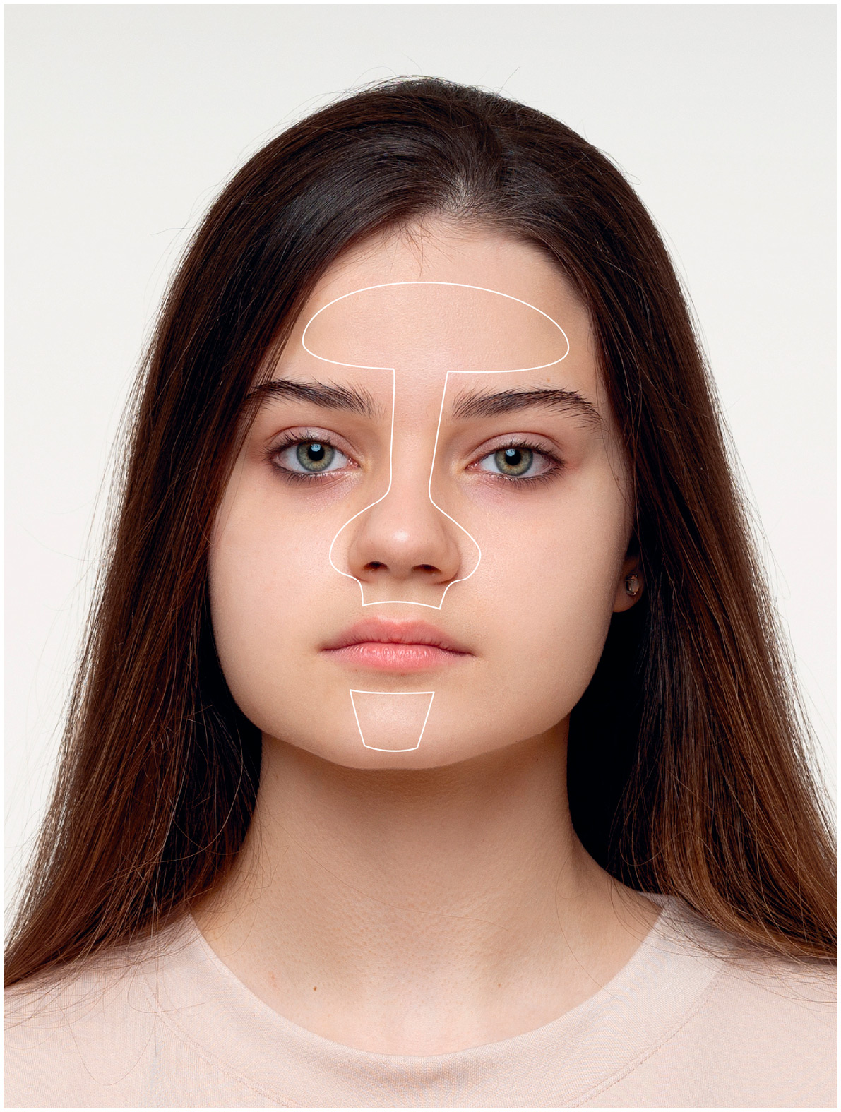 T-зона – это подбородок, нос и лоб. Если провести линии по этим участкам кожи, то получается буква Т. Схему Т-зоны лица ты можешь посмотреть на иллюстрации ниже.