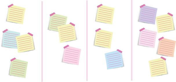 a) если на стене уже есть стикер с похожим смыслом, они наклеивают карточку ПОД него, создавая вертикальный ряд;