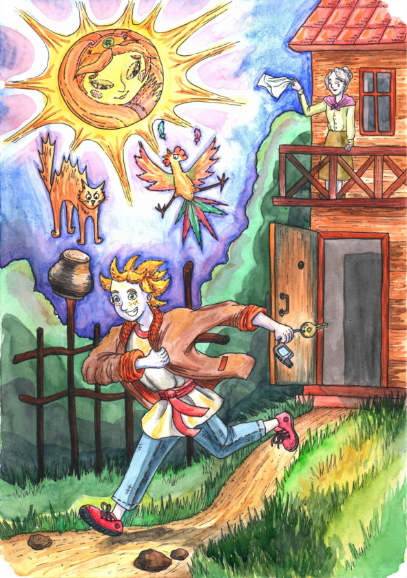 Но тебе я помогу —Вспомнишь Бабушку Ягу!Синтезатор запускает,Порошки туда кидает —Всё шипит и паром пышет!Ваня наш уж еле дышит…Бабка скачет по избушке,Бьёт Ванюшу по макушкеЧем-то мягким, непонятным —Ване стало неприятно:Будто кто-то в этот мигК нему в голову проник.Ваню за руку берёт,К синтезатору ведёт,Сбоку кнопку нажимает —И страхполис вынимает.Говорит она ему:– Быть, Ванюша, посему:Не сгореть тебе в огне —В этом ты доверься мне —И ни в море-окияне,Ни с водой какой там ямеТы не сможешь утонуть.А теперь пора и в путь.Дам тебе ещё клубок,И за ним ты на востокВсё иди – и до границыДоведёт тебя клубок.Только Ваню проводила,Как кому-то сообщила:– Дело в шляпе. МолодецВ путь отправлен, наконец! —Лебедь вспомнила к чему-то,Альфой кликнув почему-то…Покатился тут клубокМимо леса, вдоль дорог —Ваня наш за ним вприпрыжкуПоспевает что есть ног.Так и мчалися, покаИм не встретилась река.
