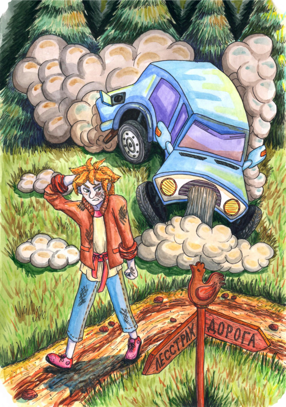 Видит – у ворот соседка(Так, Настёнка, малолетка)Хитро на него взглянулаИ рукой ему махнула.Он над ней лишь посмеялсяИ в авто своё забрался.Дал машине полный газИ умчался – скрылся с глаз.***Долго ехал он иль мало,Вдруг его Тойота встала —Не идёт она вперёд,На дыбы как конь встаёт.