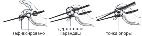 Вилка, палочки для еды. Вилка вырезается из ветки подходящего диаметра с раздвоенным концом. Вместо вилки можно использовать палочки для еды, которые делаются из ровных прямых веточек длиной 22–24 см и диаметром 0,5 см. Веточки зачищаются и к концу заостряются. Держать такие палочки во время еды можно, как показано на рисунке 2.13.
