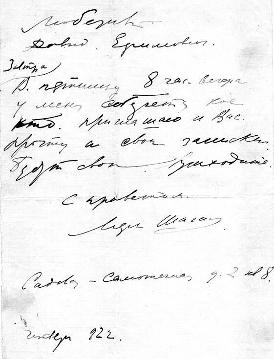 Ил. 8. Письмо М. Шагала Аркину. Начало мая 1922. Архив Н. Молока