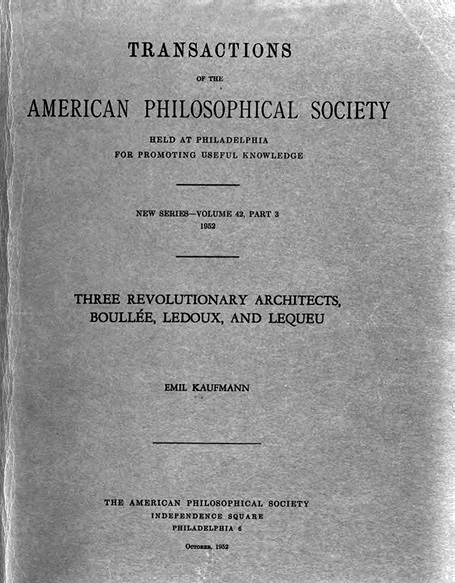 Ил. 41. Книга Эмиля Кауфмана «Три революционных архитектора: Булле, Леду, Лекё». Philadelphia: The American Philosophical Society, 1952. Обложка