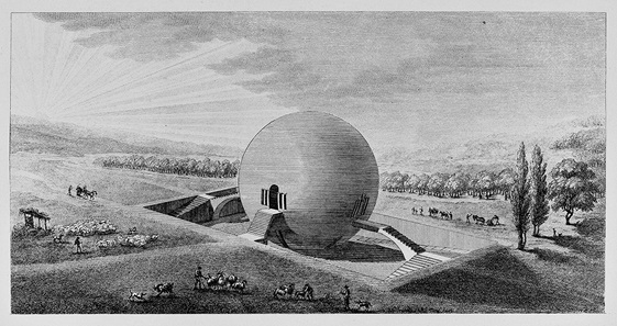 В самом деле, Зедльмайр многократно ссылается на Кауфмана, а Леду наряду с Пикассо и Ницше – один из самых упоминаемых в книге персонажей. Собственно, кауфманианская «автономная форма» легла в основу всей концепции Зедльмайра и завершилась «изоляцией искусств» и «автономным человеком». Из всех «критических форм», многие из которых он обнаружил в книге Кауфмана, больше всего Зедльмайра поразил шар – все тот же проект Дома сельскохозяйственных смотрителей в Мопертюи: