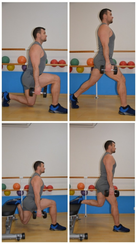 Рисунок 2.5. Выпад (сверху) и болгарский присед (снизу)
