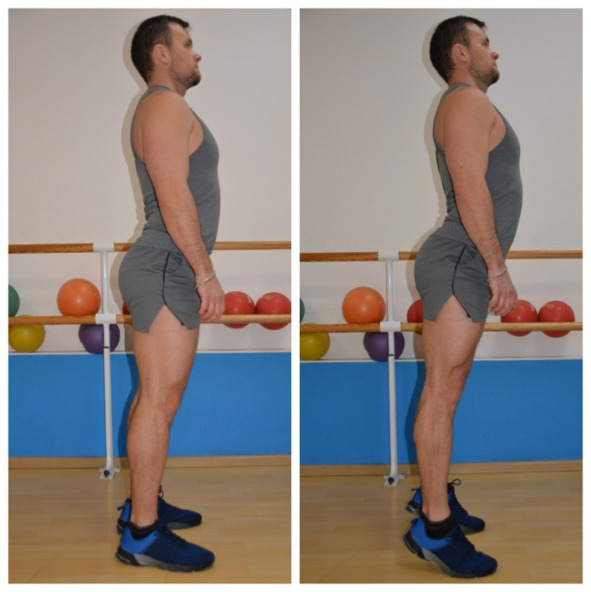Постуральное выравнивание при ретропульсии (покачивание назад) и «плоской спине» характеризуется задними колебаниями таза (ретроверсия) с последующим уплощением поясничного лордоза и разгибанием бёдер [12]. В двух типах поз линия тяжести, проходящая через центр тяжести, смещается кзади от тазобедренного сустава, и именно в этой ситуации задействование мышц-разгибателей полностью ограничено, что способствует формированию слабых ягодиц с гораздо менее выраженным профилем.