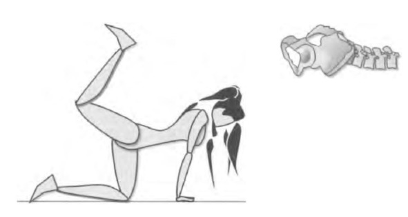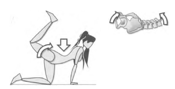 Рисунок 2.17. Разгибание бедра на четвереньках с согнутым коленом и с компенсацией таза в антиверсии