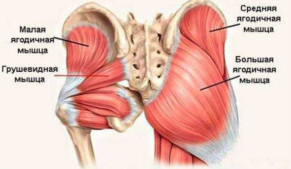 Рисунок 2.20. Средняя и большая ягодичные мышцы входят в состав мышц, отводящих бедро
