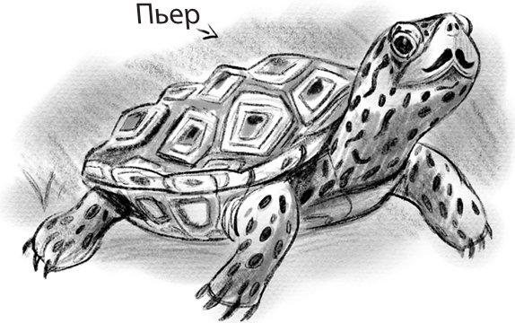 – Верно, – согласилась Хани. – Им лучше, когда к ним не пристают, – вон, поглядите на Шелли. – Она отвела нас к другому аквариуму, где тоже жила черепаха, но коричневого цвета: она сидела на камне, отвернувшись носом к стене. Похоже, ей хотелось оказаться подальше от нас… и от Пьера. – Пьер просто обожает Шелли, но она иловая черепаха и не желает иметь с ним ничего общего. Когда он лезет знакомиться, она щелкает зубами. – Хани театрально вздохнула. – А Пьер ее верный поклонник.