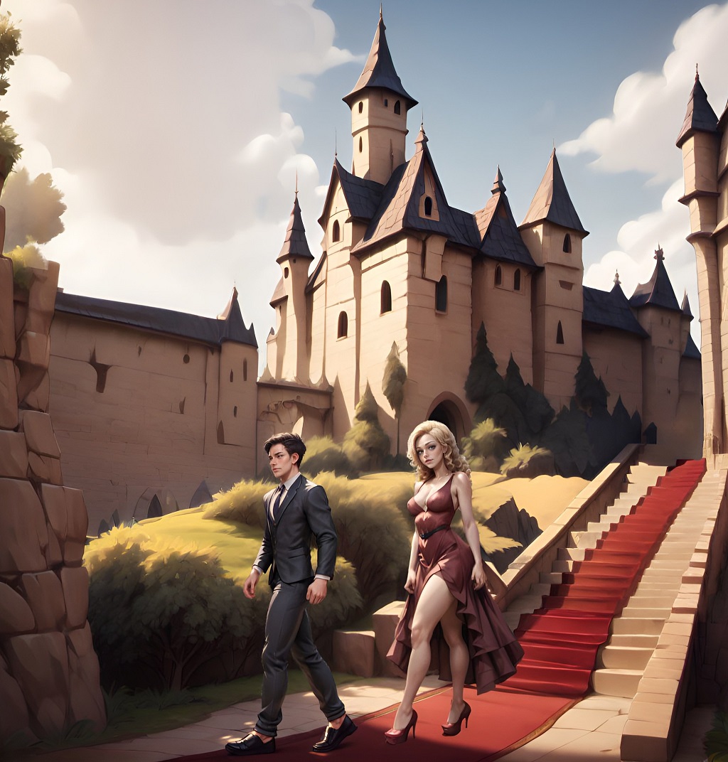 Из роскошной кареты выбралась симпатичная молодая дама, облачённая в шикарное пышное платье, прошла по ковровой дорожке в сопровождении совсем молодого, стройного, можно сказать щуплого, юноши, и склонила голову перед хозяином земель, став чуть ли не на колено перед герцогом.