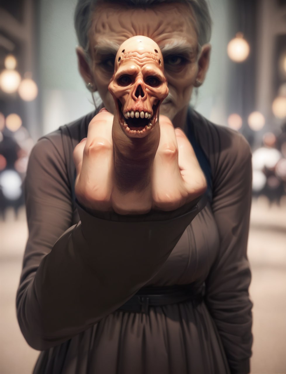 – А-а-а-а! – завизжала тётка и остервенело затрусила рукой, на которой вместо крайней фаланги среднего пальца на неё взирала и клацала зубами маленькая головка отвратного мертвеца. – Ты что со мной сделала?! Ведьма! А-а-а-а!