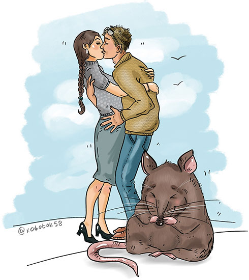 Осторожно открыл он дверь кабинета и увидел сотрудниц, которые забрались на свои столы. И только одна Маша Прищепкина в полной тишине пыталась подманить мышь семечками.