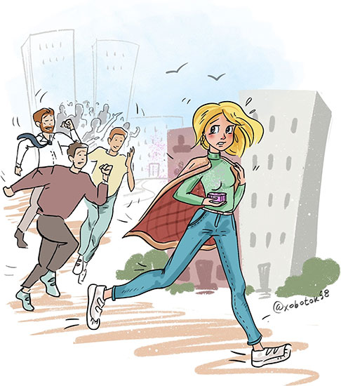 С тех пор Люду стали видеть в разных неожиданных местах. Причем в рабочее время, что удивительно. То она нарезала круги в осеннем парке, и ее видел проезжавший мимо директор. То рассекала по магазинам в разгар рабочего дня, несмотря на то что в этот день Люде в принципе не удалось даже пообедать. А некоторые отпускники и вовсе видели Люду в спортзале или на занятиях по йоге. Это обстоятельство немного смущало женщину, но поскольку во время всех этих происшествий она честно находилась на работе, стало ясно, что где-то в городе просто ходит ее, Людмилы, двойник. Какая-то дама, очень на нее похожая, но не она.