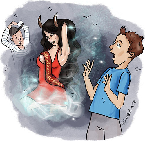 – Брюнетка. Ноги – во! Формы – во! – кричали товарищи, время от времени показывая желаемые объемы на себе. Обсудили детально все: длинные волосы до колен, тонкую талию, красное платье и даже зачем-то ленту «Искусительница» на груди. Это все Санька подначивал, из-за него все случилось.