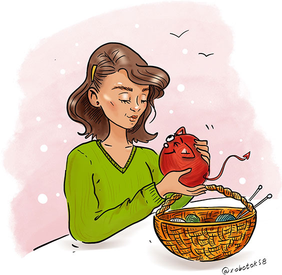 Лиля повертела клубок в руке, осмотрела его внимательно и тут заметила у клубка маленькие, едва различимые ушки. Клубок изо всех сил прижимал их, чтобы никто не догадался, что они есть. Но Лиля точно знала – это они. А конец веревочки был у клубка хвостиком.