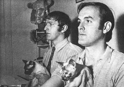 CLEESE: So I’d got The Frost Report, and sitting at the scriptwriter’s table were five future Pythons: Mike and Terry tended to write visual, fill-in items, which we used to shoot during the course of the week and then they would be edited into the show. And Eric typically used to write monologues which Ronnie Barker often did. So the show frequently consisted of a filmed item by Mike and Terry, one or two sketches by Graham and me, occasional Ronnie Barker pieces by Eric, and then a lot of other material from another dozen scriptwriters, of whom the leader was Marty Feldman. Graham didn’t perform; Mike and Terry would probably say that he turned up in one of the filmed items at some point, but I don’t remember him.
