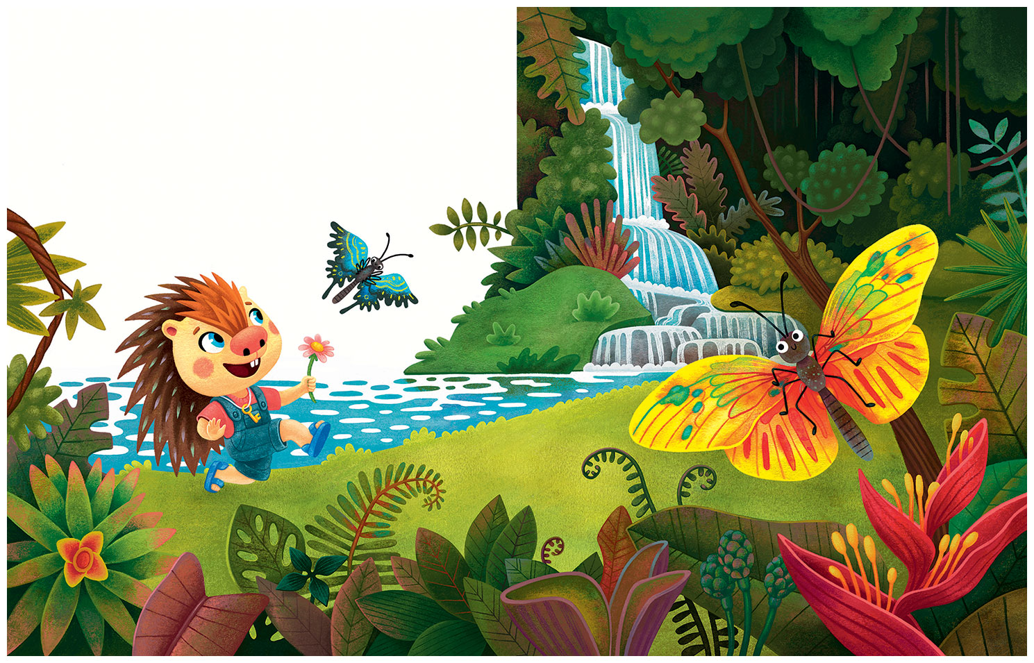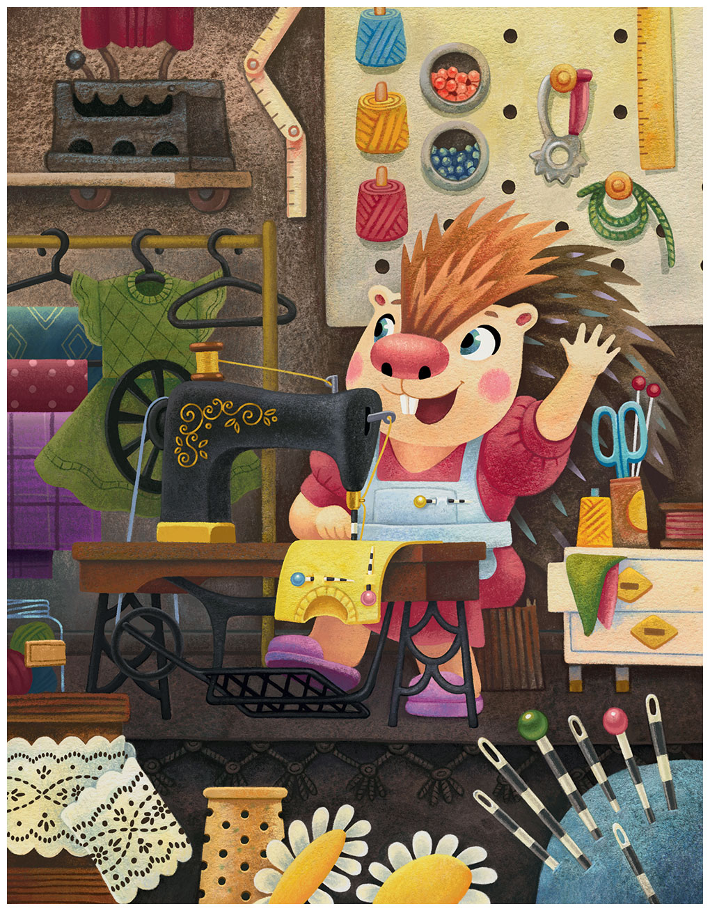 Дикобразик втянул носом лесной влажный воздух и пустился в путь. Его иголки весело подскакивали. Потому что он не шёл, а подпрыгивал.