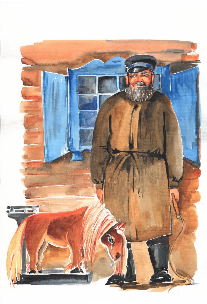 Прошло семь лет. Однажды Катерина заболела, а у крестьянина не было денег на её лечение. И решил он сдать пони на живодёрню. Накинул веревку на шею и повёл. Поставили лошадку на весы. А она совсем больна и худа, мало весит. Совсем мало мяса – одни кости. И тут заметил хозяин живодёрни, как у пони из глаз слёзы выкатились. Дал он три медяка крестьянину и велел убираться восвояси.