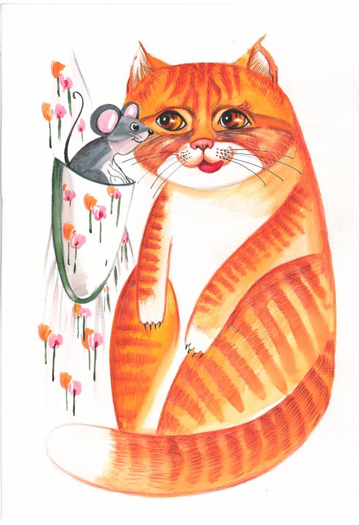 А мама-мышь вскоре рассказала Пете, чего же следует опасаться больше всего: «Это кот! Рыжий, что живёт наверху». Петя был удивлён, не поверил маме. Разве это может быть правдой? Такой красивый, с мягкой шелковистой шерстью и блестящими янтарными глазами? Кот? Это самое милое создание, которое Петя видел в жизни и впервые не испугался, а даже мечтал познакомиться с ним поближе.
