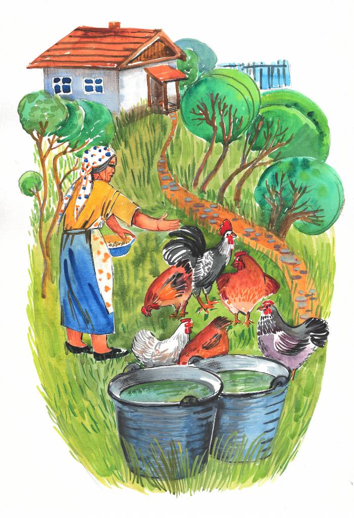 К концу лета выяснилось, что Пикколо – маленький петушок, а не курочка, с красивыми радужными перьями. Бабушка часто угощала кур остатками пирога или булочкой. Разбрасывая дрожащей рукой лакомство, громко звала: «Пикколо, Пикколо, Пикколо!» Наблюдая, как петушок склёвывает самые крупные кусочки, одобрительно цокала, обтирая руки о фартук.