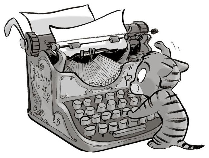 Тем временем Помпончик продолжал восхищаться пишущей машинкой – он просто не мог от неё оторваться. Наконец котёнок поднял лапку и осторожно нажал на клавишу – машинка напечатала букву Б. Малыш ударил по другой клавише и получил замечательную букву А. Это было просто невероятно!