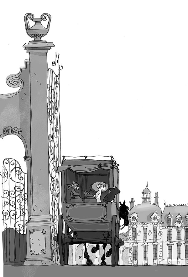 Луноброд и его друзья выпрыгнули из повозки за мгновение до того, как возница остановил лошадь. Коты стремглав перемахнули через дворик, юркнули в дверь, прошмыгнув под ногами у дылды-служанки, и помчались по коридорам, устланным роскошными коврами. Затем коты поднялись по скользкой мраморной лестнице.