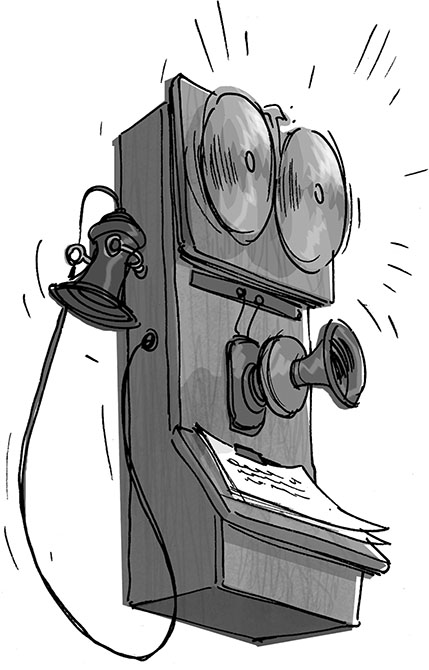 Треньканье шло из громоздкого чёрного аппарата, висевшего на стене. Мистер Луноброд догадался, что это был телефон (когда произошла вся эта история, телефон изобрели совсем недавно, и он ещё был в новинку).