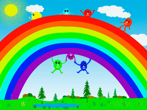 В одной большой и красивой радуге жили весёлые и дружные фотончики.