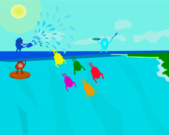 Потом все фотончики ныряли в озеро, чтобы умыться. Водичка в озере от этого нагревалась. И только Синчика строгий дядя Пигмент не пускал в воду. Потому, что Синчику надо было окрасить и водичку.