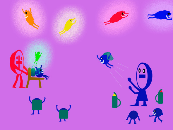 Умывшись, фотончики летели пить чай к дяде лимончику. В лимончик залетали все кроме Жёлтика. Строгий дядя Пигмент заставлял жёлтика красить лимончик в жёлтый цвет.