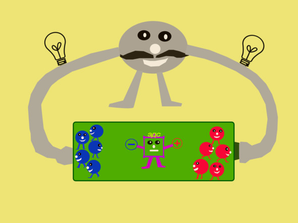 Иногда, когда протончики и электрончики начинали дурить их наказывали. И запирали в батарейку. В батарейке строгая и даже слегка суровая тётя ЭДС ставила электрончиков в синий угол, а протончиков в красный.