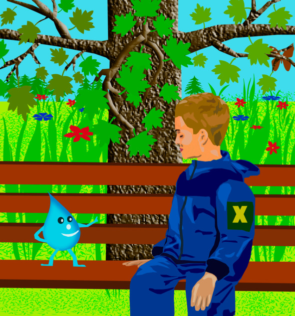 Коля открыл глаза. Он всё также сидел на скамейке в парке, ожидая маму. Вдруг справа, что то булькнуло. Коля посмотрел вниз и увидел большую капельку воды.