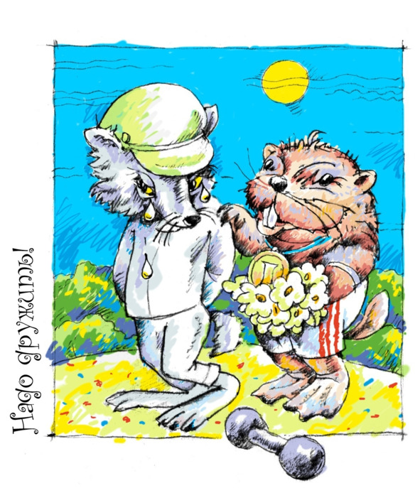 – Поднимать гантели и тяжести, – ответил медвежонок.