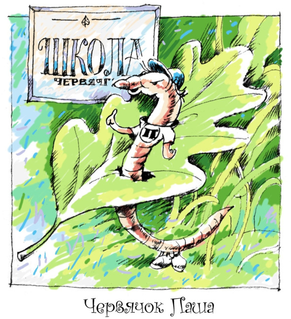Возвращаясь из школы, червячок Паша встретил ватагу ребят-червячков.