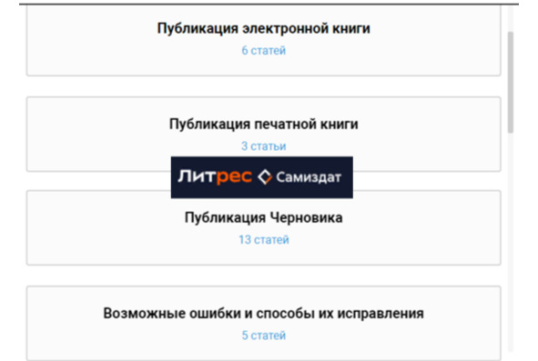 Таким образом, на платформе Ridero автору предоставляется гораздо больше возможностей по работе с книгой, чем на Литрес: Самиздат. Единственное, в чем издательство Литрес: Самиздат опережает Ridero, – это огромная база знаний (смотрите рисунок 1).