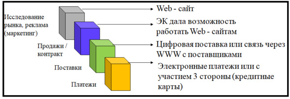 – включает применение технологии электронного обмена данными, электронной почты, электронных платежей, необходимых для нормального проведения коммерческих операций.
